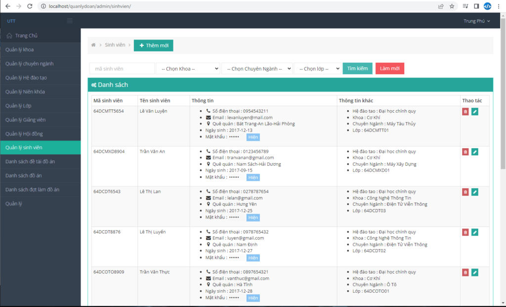 Code phần mềm quản lý học sinh THPT mô hình 3 lớp C# - winform Full báo cáo